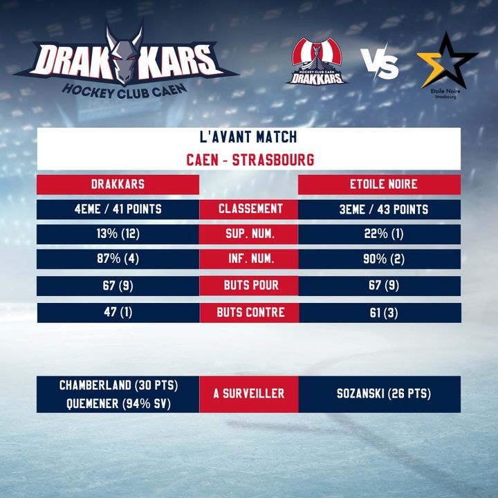 🟥🟦 Entre deux équipes proches au classement et dans les statistiques, qui sortira vainqueur entre l’Etoile Noire de Strasbourg et nos Drakkars de Caen ?