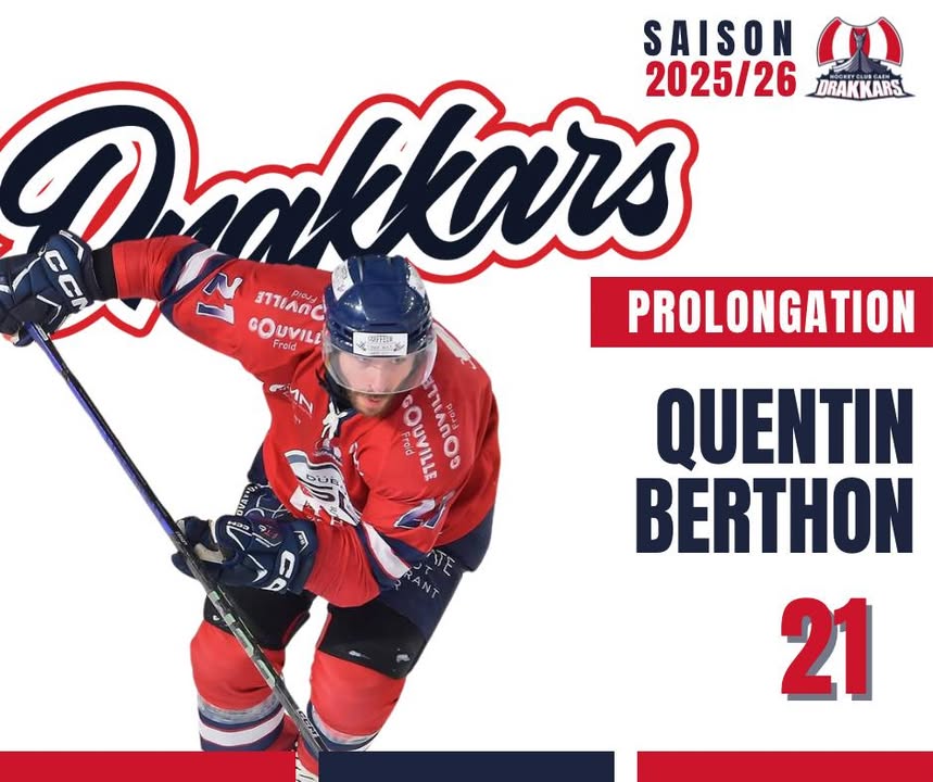 Notre #21 Quentin Berthon sera toujours dans l’effectif des Drakkars la saison prochaine. Peu épargné par les blessures cette saison, il aura néanmoins activement participé à l’incroyable saison de l’équipe par sa hargne et son activité inépuisable sur la glace. Un vrai combattant, un vrai Drakkar.