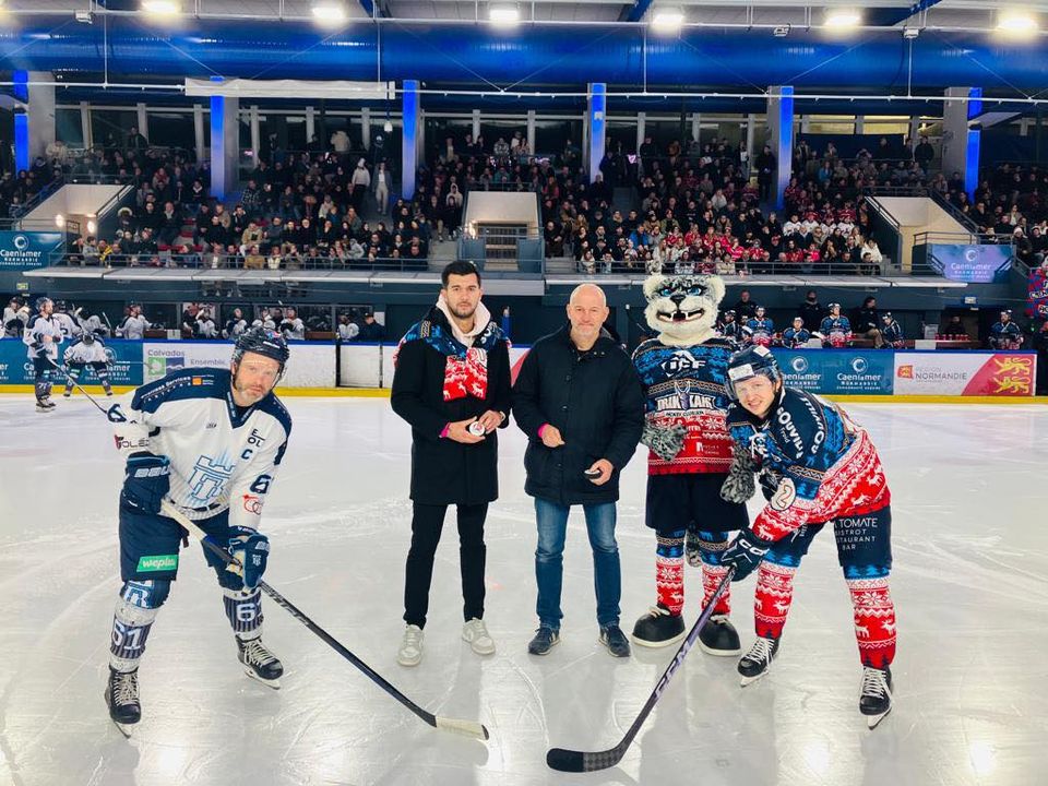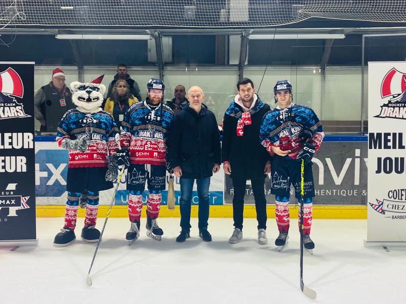 🟥🟦 Le coup d’envoi du match de Noël et la remise des récompenses « Coiffeur chez Max » ont été effectués par Gilles et Maxence Grollier d’ICF.