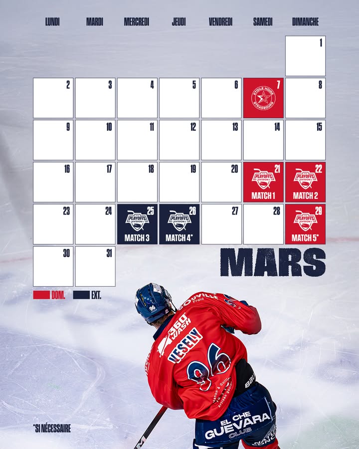 Retrouvez le calendrier de mars pour nos Drakkars !