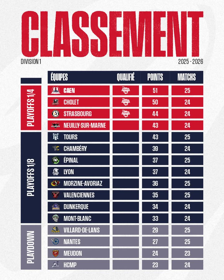 🔜 Prochain match samedi à l’extérieur contre Villard-De-Lans !