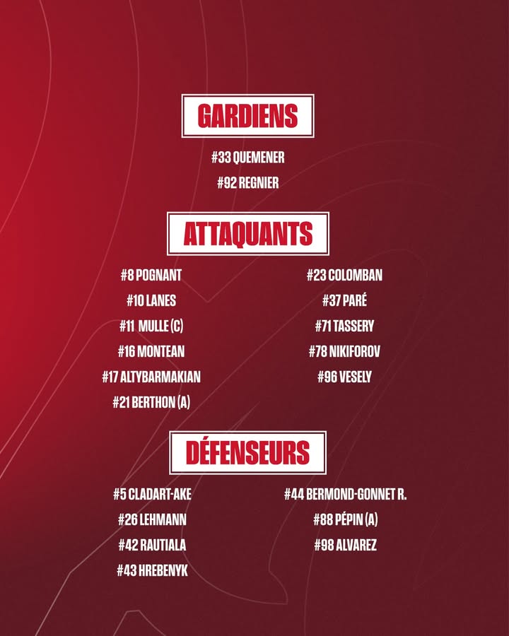 𝗟𝗮 𝗹𝗶𝘀𝘁𝗲 𝗰𝗼𝗻𝘁𝗿𝗲 𝗡𝗲𝘂𝗶𝗹𝗹𝘆 📋 Retrouvez notre alignement pour ce 3e match de division 1 avec le retour de l’un de nos joueurs : Le
