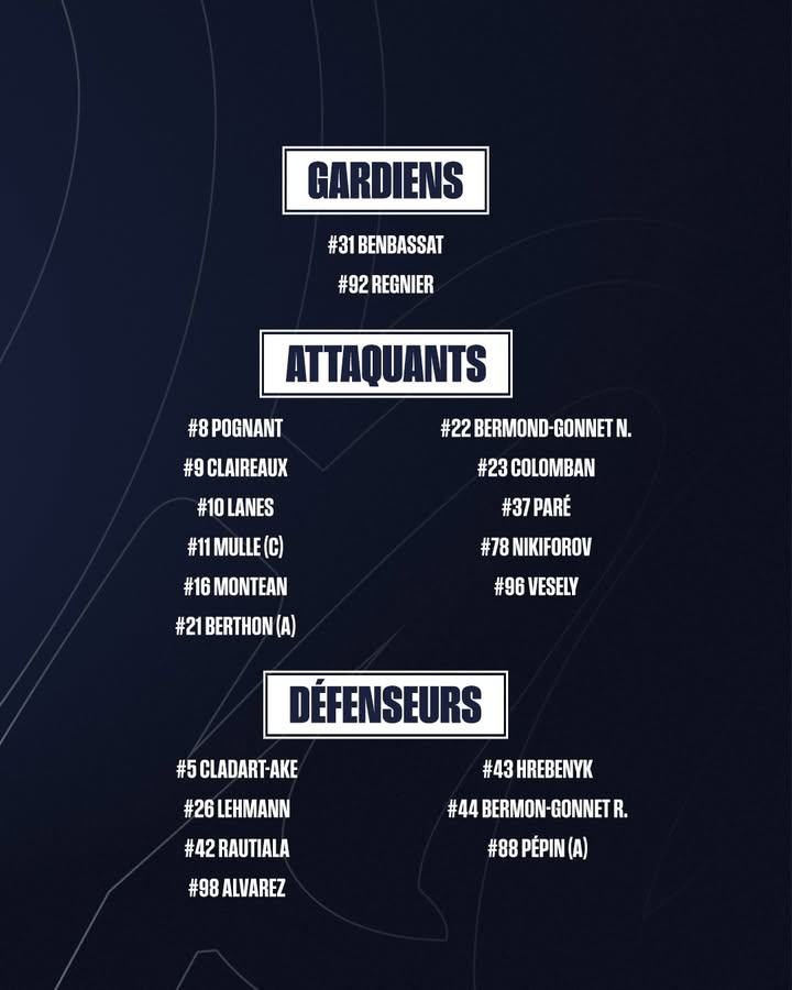 Retrouvez la liste des joueurs partis affronter les Pingouins.