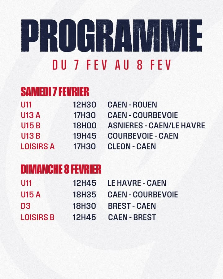 ➡️ Programme complet des équipes caennaises ce week-end !