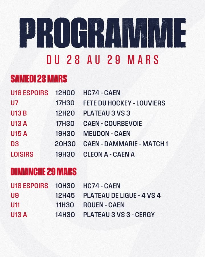🟥🟦📅🏒 𝗟𝗲 𝗽𝗿𝗼𝗴𝗿𝗮𝗺𝗺𝗲 𝗱𝘂 𝘄𝗲𝗲𝗸-𝗲𝗻𝗱