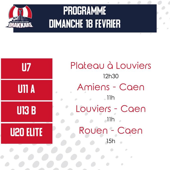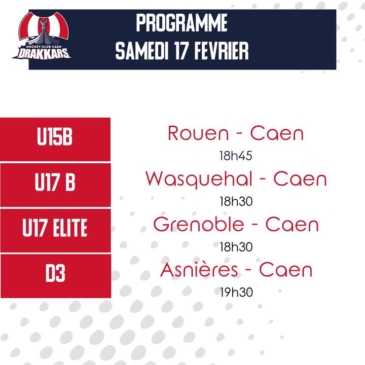 Dimanche, nos minots seront en plateau à Louviers, les U11 en déplacement à Amiens. les U13B joueront à Louviers également, quand les U20 iront à Rouen. Ces mêmes rouennais seront en visite à la patinoire mercredi soir pour le retour des Drakkars à la maison.