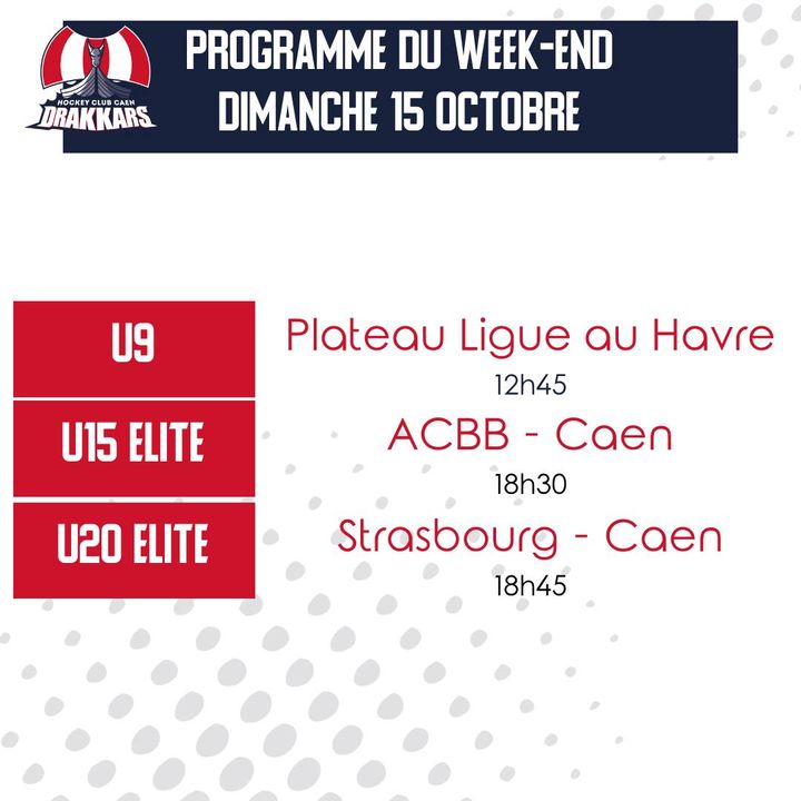 Les U15 seront à Les Tigres de l’ACBB, les U13 au Havre tout comme les U9 dimanche.